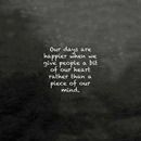 Our days are happier when we give people a bit of our heart September 27, 2016Inspirational sayingsinspirational quotes, inspirational sayings, quote, quotes, sayingsjeffschultz Be Sociable, Share! TweetPin It Related